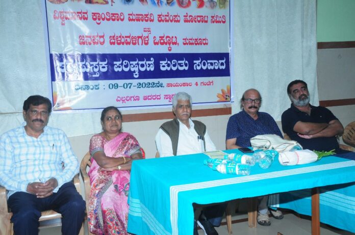 ತುಮಕೂರು ನಗರದಲ್ಲಿ ವಿಶ್ವಮಾನವ ಕ್ರಾಂತಿಕಾರಿ ಮಹಾಕವಿ ಕುವೆಂಪು ಹೋರಾಟ ಸಮಿತಿ ಮತ್ತು ಜನಪರ ಚಳವಳಿಗಳ ಒಕ್ಕೂಟದಿಂದ ಹಮ್ಮಿಕೊಂಡಿದ್ದ ಪಠ್ಯಪುಸ್ತಕ ಪರಿಷ್ಕರಣೆ ಕುರಿತ ಸಂವಾದದಲ್ಲಿ ಅವರು ಮಾತನಾಡಿದರು.