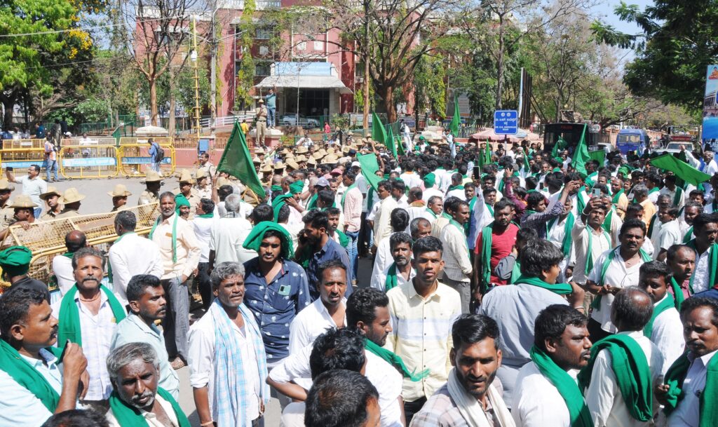 ನಗರದ ಜಾಸ್ಟೋಲ್ನಿಂದ ಬಿ.ಹೆಚ್.ರಸ್ತೆ ಮೂಲಕ ಸಾಗಿ ಬಂದ ರೈತರ ಪಾದಯಾತ್ರೆ, ಟೌನ್ಹಾಲ್, ಅಶೋಕ ರಸ್ತೆಯಲ್ಲಿ ಹಾದು ಜಿಲ್ಲಾಧಿಕಾರಿಗಳ ಕಚೇರಿ ತಲುಪಿತು.