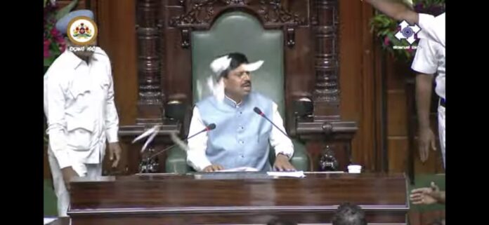ವಿಧಾನಸಭೆಯಲ್ಲಿ ಅಧಿವೇಶನ ನಡೆಯುತ್ತಿದ್ದ ವೇಳೆ ಉಪಸಭಾಧ್ಯಕ್ಷರ ಮೇಲೆ ಕಾಗದ ಪತ್ರ ಹರಿದು ಸ್ಪೀಕರ್ ಸ್ಥಾನಕ್ಕೆ ಅಗೌರವ ಮತ್ತು ಅಸಭ್ಯ ವರ್ತನೆ ತೋರಿದ ಬಿಜೆಪಿಯ 10 ಮಂದಿ ಸದಸ್ಯರನ್ನು ಸದನದಿಂದ ಅಮಾನತುಗೊಳಿಸಲಾಗಿದೆ.