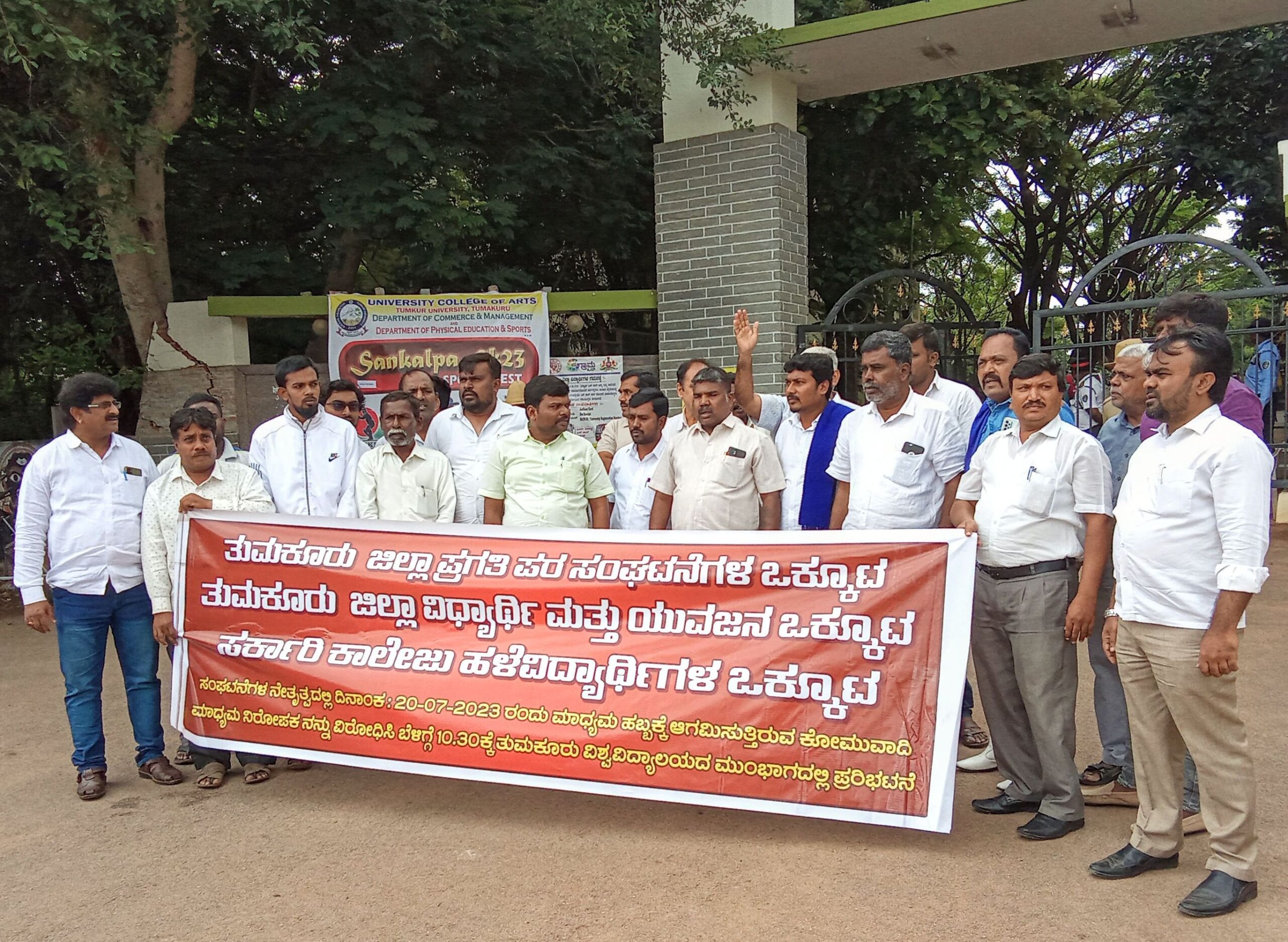 ಒಂದು ಸಮುದಾಯದ ವಿರುದ್ಧ ದ್ವೇಷ ಭಾವನೆ ಬಿತ್ತುವ, ಕೋಮು ಶಕ್ತಿಗಳ ಪರ ವಾದಿಸುವ ಖಾಸಗಿ ಟಿವಿ ಚಾನೆಲ್ ಸಂಪಾದಕ ಅಜಿತ್ ಹನುಮಕ್ಕನವರ್ ಅವರನ್ನು ತುಮಕೂರು ವಿಶ್ವವಿದ್ಯಾಲಯಕ್ಕೆ ರಾಜ್ಯ ಮಟ್ಟದ ಮಾಧ್ಯಮ ಹಬ್ಬದ ಉದ್ಘಾಟನೆಗೆ ಆಮಂತ್ರಿಸಿರುವ ವಿವಿ ಕ್ರಮವನ್ನು ಖಂಡಿಸಿ ಜಿಲ್ಲಾ ಪ್ರಗತಿಪರ ಸಂಘಟನೆಗಳ ಒಕ್ಕೂಟ, ಸರ್ಕಾರಿ ಕಲಾ ಕಾಲೇಜು ಹಳೇ ವಿದ್ಯಾರ್ಥಿಗಳ ಸಂಘ ಹಾಗೂ ವಿದ್ಯಾರ್ಥಿ ಯುವ ಜನರ ಒಕ್ಕೂಟಗಳ ನೇತೃತ್ವದಲ್ಲಿ ವಿವಿ ಮುಖ್ಯದ್ವಾರದಲ್ಲಿ ಧರಣಿ ಕುಳಿತು, ಘೋಷಣೆ ಕೂಗಿ ಪ್ರತಿಭಟನೆ ನಡೆಸಲಾಯಿತು.