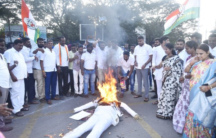 ಪ್ರತಿಭಟನೆಯಲ್ಲಿ ಜಿಲ್ಲಾ ಕಾಂಗ್ರೆಸ್ ಅಧ್ಯಕ್ಷ ಚಂದ್ರಶೇಖರಗೌಡ, ಮಾಜಿ ಅಧ್ಯಕ್ಷ ಆರ್.ರಾಮಕೃಷ್ಣ, ಯುವ ಕಾಂಗ್ರೆಸ್ ರಾಜ್ಯ ಪ್ರಧಾನ ಕಾರ್ಯದರ್ಶಿ ಅನಿಲ್ಕುಮಾರ್, ಜಿಲ್ಲಾ ಉಪಾಧ್ಯಕ್ಷ ಟಿ.ಪಿ.ಮೋಹನ್ಕುಮಾರ್, ನಗರ ಅಧ್ಯಕ್ಷ ಆರ್ಮಾನ್, ಇಲಾಯಿ ಸಿಕಂದರ್, ಸಂಜು, ಮುಖಂಡರಾದ ನರಸೀಯಪ್ಪ, ವೈ.ಎನ್.ನಾಗರಾಜು. ಟಿ.ಎಂ.ಮಹೇಶ್, ಅಂಬರೀಷ್, ನಟರಾಜಶೆಟ್ಟಿ, ಚಂದ್ರಯ್ಯ, ಸಂಜೀವ್ಕುಮಾರ್, ಖಾದರ್ ಬಾಷಾ, ಸುಜಾತ, ಜಯಮ್ಮ, ಯಶೋದ,ಕವಿತಾ, ನಾಗಮಣಿ, ಭಾಗ್ಯ ಮೊದಲಾದವರು ಇದ್ದರು.