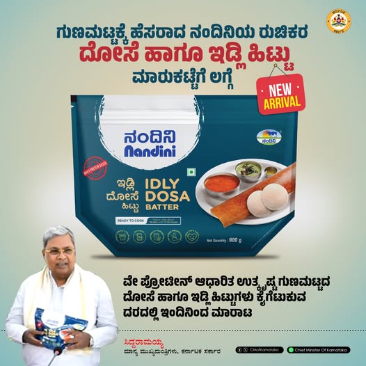 ನಾಗರಿಕರ ಬಹುದಿನಗಳ ಅಪೇಕ್ಷೆಯಂತೆ ಇದೀಗ ನಂದಿನಿ ಉತ್ಪನ್ನಗಳಿಗೆ ಹೊಸ ಸೇರ್ಪಡೆಯಾಗಿ ದೋಸೆ ಹಾಗೂ ಇಡ್ಲಿ ಹಿಟ್ಟು ಮಾರುಕಟ್ಟೆಗೆ ಲಗ್ಗೆಯಿಟ್ಟಿದೆ. ವೇ ಪ್ರೋಟೀನ್ ಆಧಾರಿತ ಉತ್ಕೃಷ್ಟ ಗುಣಮಟ್ಟದ ಹಿಟ್ಟು ಕೈಗೆಟುಕುವ ದರದಲ್ಲಿ ಗ್ರಾಹಕರಿಗೆ ಲಭ್ಯವಿದ್ದು, ಬೆಳಗ್ಗಿನ ಉಪಾಹಾರವು ಗರಿಗರಿ ದೋಸೆ, ಸವಿಸವಿ ಇಡ್ಲಿಯೊಂದಿಗೆ ರುಚಿ ಮತ್ತು ಆರೋಗ್ಯವನ್ನು ವೃದ್ಧಿಗೊಳಿಸಲಿದೆ ಎಂದು ಹೇಳಿದ್ದಾರೆ.
