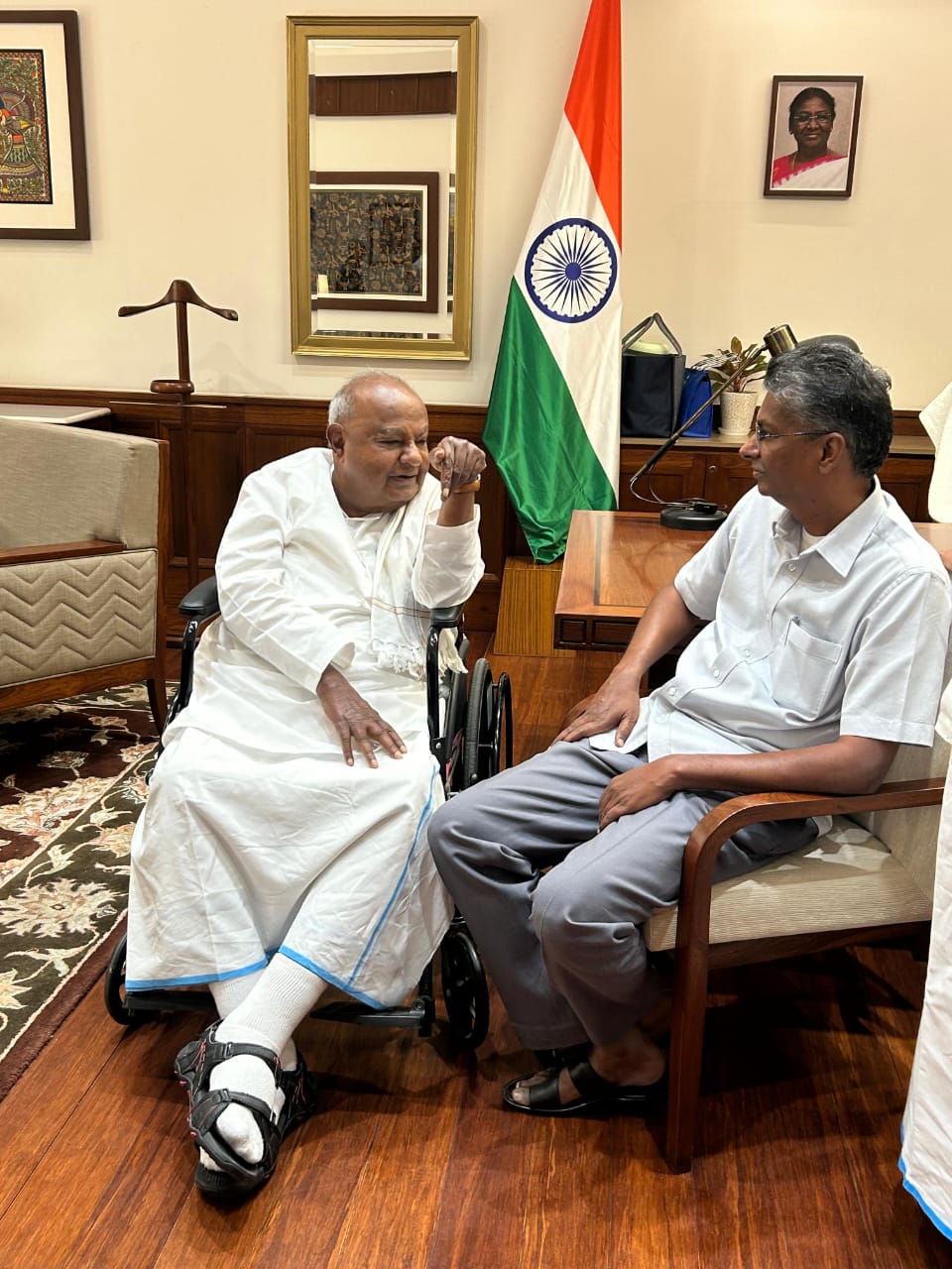 ಇದಾದ ಬಳಿಕ ಅವರು ನೇರವಾಗಿ ಕೇಂದ್ರ ಸಚಿವ ಕುಮಾರಸ್ವಾಮಿ ನಿವಾಸಕ್ಕೆ ಆಗಮಿಸಿದ್ದು ಅವರೊಂದಿಗೆ ಸುದೀರ್ಘ ಮಾತುಕತೆ ನಡೆಸಿದ್ದಾರೆ. ಈ ವೇಳೆ ಮಾಜಿ ಪ್ರಧಾನಿ ದೇವೇಗೌಡ ಕೂಡ ಇವರ ಜೊತೆ ಪ್ರಸಕ್ತ ರಾಜಕೀಯ ವಿದ್ಯಮಾನಗಳ ಕುರಿತು ನಡೆಸಿದ್ದಾರೆ.