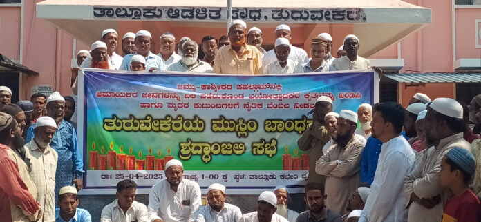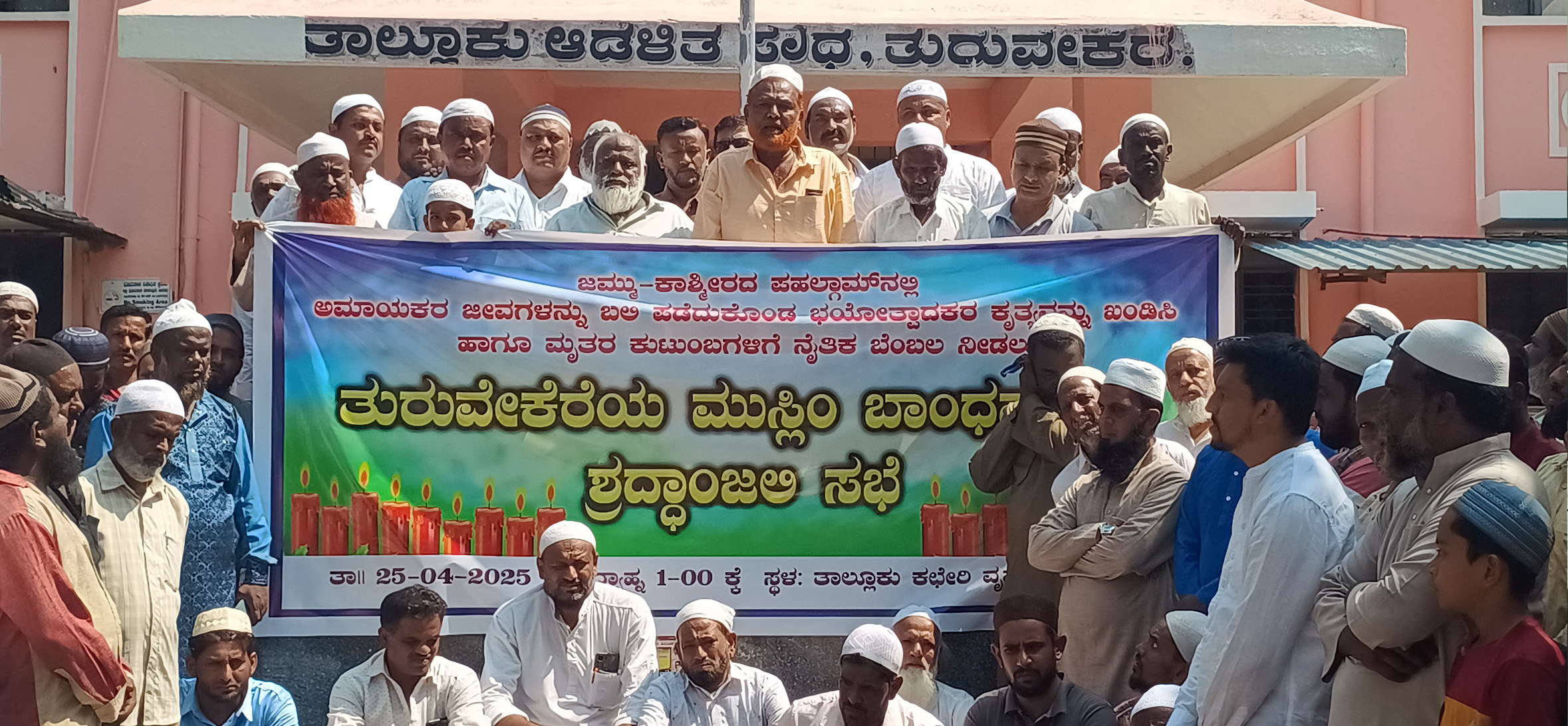 ತುರುವೇಕೆರೆ ಪಟ್ಟಣದಲ್ಲಿರುವ ನಾಲ್ಕು ಮಸೀದಿಗಳಲ್ಲಿ ಶುಕ್ರವಾರದ ಪ್ರಾರ್ಥನೆ ಮಾಡಿದ ನಂತರ ಬಾಣಸಂದ್ರ ವೃತ್ತದಲ್ಲಿ ಸಮಾವೇಶಗೊಂಡ ನೂರಾರು ಮುಸ್ಲಿಂ ಬಾಂಧವರು ತಾಲೂಕು ದಂಡಾಧಿಕಾರಿಗಳಿಗೆ ಮನವಿ ಪತ್ರ ಸಲ್ಲಿಸಿ ಕೂಡಲೇ ಪಾಕಿಸ್ತಾನದ ವಿರುದ್ಧ ಉಗ್ರ ಕ್ರಮ ಕೈಗೊಳ್ಳುವಂತೆ ಕೇಂದ್ರ ಸರ್ಕಾರಕ್ಕೆ ಮನವಿ ಮಾಡಿದರು.