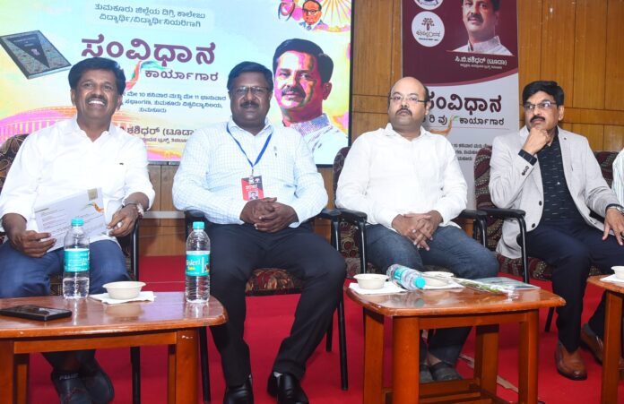 ತುಮಕೂರು ವಿಶ್ವವಿದ್ಯಾನಿಲಯದ ವಿಶ್ವೇಶ್ವರಯ್ಯ ಸಭಾಂಗಣದಲ್ಲಿ ತುಮಕೂರು ಜಿಲ್ಲೆಯ ಡಿಗ್ರಿ ಕಾಲೇಜು ವಿದ್ಯಾಥಿಗಳು ಮತ್ತು ವಿದ್ಯಾರ್ಥಿನಿಯರಿಗೆ ಏರ್ಪಡಿಸಿದ್ದ ಸಂವಿಧಾನ ಅರಿವು ಕಾರ್ಯಾಗಾರದಲ್ಲಿ ಭಾಗವಹಿಸಿ ಅವರು ಮಾತನಾಡಿದರು.