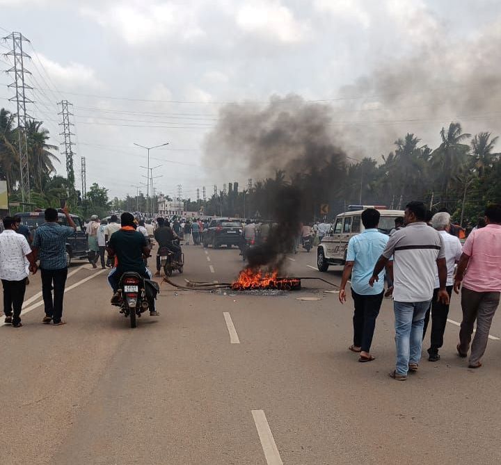 ತುಮಕೂರು ಜಿಲ್ಲೆಯ ಜನರ ತೀವ್ರ ವಿರೋಧದ ನಡುವೆಯೂ ಹೇಮಾವತಿ ಎಕ್ಸ್ಪ್ರೆಸ್ ಲಿಂಕ್ ಕೆನಾಲ್ ಕಾಮಗಾರಿ ಆರಂಭಿಸಿರುವುದನ್ನು ವಿರೋಧಿಸಿ ನಿಷೇಧಾಜ್ಞೆ ನಡುವೆಯೂ ರೈತರು ಹೋರಾಟ ನಡೆಸಿದ್ದು, ಮಲ್ಲಸಂದ್ರದ ಸಮೀಪವಿರುವ ಕಳ್ಳಿಪಾಳ್ಯ ಗೇಟ್ ಬಳಿ ಹೆದ್ದಾರಿಯಲ್ಲಿ ಟೈರ್ಗೆ ಬೆಂಕಿ ಹಚ್ಚಿ ಆಕ್ರೋಶ ಹೊರ ಹಾಕಿದರು.