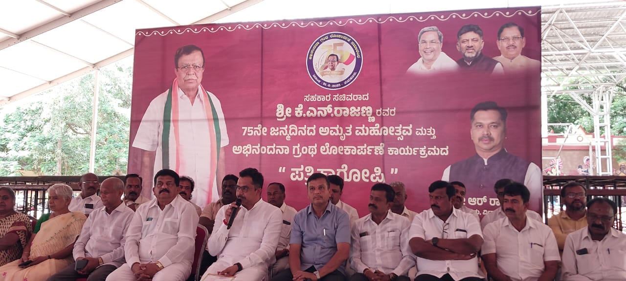 ಸಹಕಾರಿ ಸಚಿವ ಕೆ.ಎನ್. ರಾಜಣ್ಣ ಅವರ 75ನೇ ಜನ್ಮದಿನದ ಅಮೃತಮಹೋತ್ಸವ ಮತ್ತು ಅಭಿನಂದನಾ ಗ್ರಂಥದ ಲೋಕಾರ್ಪಣಾ ಕಾರ್ಯಕ್ರಮವನ್ನು ಜೂ. 21ರಂದು ಸರ್ಕಾರಿ ಪದವಿ ಪೂರ್ವ ಕಾಲೇಜು ಮೈದಾನದಲ್ಲಿ ನಡೆಯಲಿದೆ. ಈ ಕಾರ್ಯಕ್ರಮದಲ್ಲಿ ಎರಡು ಲಕ್ಷ ಜನ ಸೇರುವ ನಿರೀಕ್ಷೆ ಇದ್ದು ಇದು ಇತಿಹಾಸವಾಗಿ ಉಳಿಯಲಿದೆ ಎಂದು ವಿಧಾನ ಪರಿಷತ್ ಸದಸ್ಯ ರಾಜೇಂದ್ರ ರಾಜಣ್ಣ ತಿಳಿಸಿದರು.