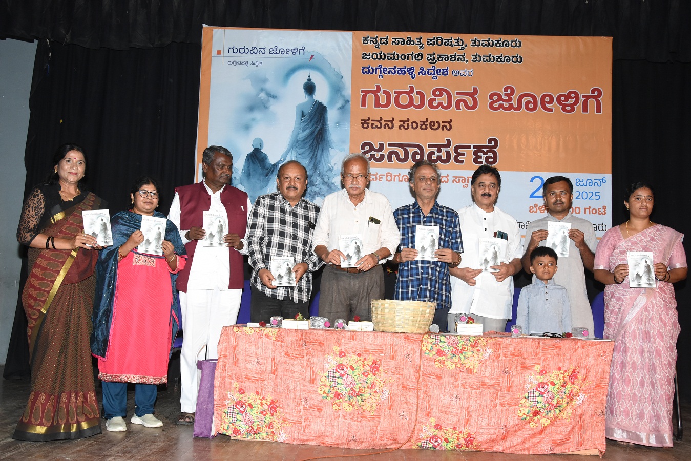 ತುಮಕೂರು ನಗರದ ಕನ್ನಡ ಭವನದಲ್ಲಿ ಹಮ್ಮಿಕೊಂಡಿದ್ದ ದುಗ್ಗೇನಹಳ್ಳಿ ಸಿದ್ಧೇಶ್ ಅವರ ‘ಗುರುವಿನ ಜೋಳಿಗೆ’ ಕವನ ಸಂಕಲವನ್ನು ಜನಾರ್ಪಣೆ ಮಾಡಿ ಅವರು ಮಾತನಾಡಿದರು. ಕಾವ್ಯರಚನೆ ಮಾಡುವ ಕವಿ ತಾನು ನಿಂತ ನೀರಾಗದೆ ವಿಕಸನಗೊಳ್ಳಬೇಕು. ಚಲನಶೀಲತೆ, ಸೃಜನಶೀಲತೆಯನ್ನು ಬೆಳೆಸಿಕೊಂಡು ಬೆಳೆಯಬೇಕು. ಅದು ಸರಿಯಾದ ಬೆಳವಣಿಗೆ ಎಂದರು.