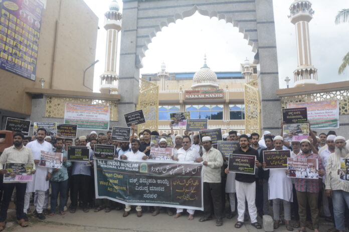 ಶುಕ್ರವಾರದ ಸಾಮೂಹಿಕ ಪ್ರಾರ್ಥನೆಯ ನಂತರ ಮೆಕ್ಕಾ ಮಸೀದಿಯ ಮುತ್ತುವಲ್ಲಿ ನೇತೃತೃದಲ್ಲಿ ನೂರಾರು ಮುಸ್ಲಿಮರು ಫಲಕಗಳನ್ನು ಪ್ರದರ್ಶಿಸುವ ಮೂಲಕ ಕೇಂದ್ರ ಸರಕಾರ ಜಾರಿಗೆ ತಂದಿರುವ, ಮುಸ್ಲಿಂ ಬಾಂಧವರಿಗೆ ಕಂಟಕವಾದ ವಕ್ಪ್ ಮಸೂದೆಯನ್ನು ಹಿಂಪಡೆಯಬೇಕೆಂದು ಆಗ್ರಹಿಸಿದರು.