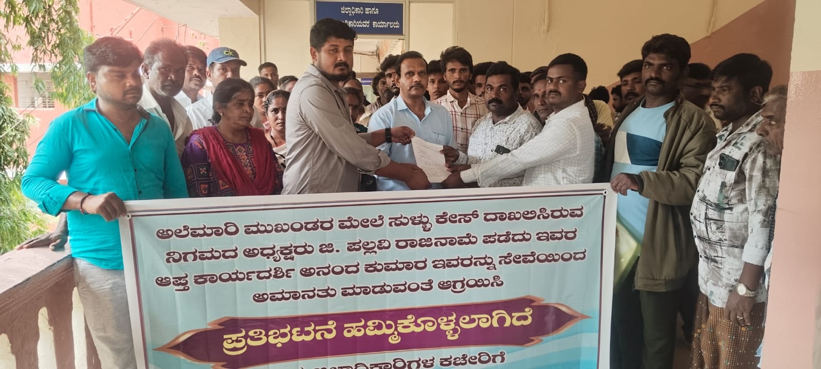 ಅಲೆಮಾರಿ ಸಮುದಾಯದ ಮುಖಂಡರ ಮೇಲೆ ಸುಳ್ಳು ಕೇಸು ದಾಖಲಿಸಿರುವ ಕರ್ನಾಟಕ ರಾಜ್ಯ ಅಲೆಮಾರಿ ಅಭಿವೃದ್ಧಿ ನಿಗಮದ ಅಧ್ಯಕ್ಷೆ ಜಿ.ಪಲ್ಲವಿ ರಾಜೀನಾಮೆ ನೀಡಬೇಕು ಮತ್ತು ಅವರ ಕಾರ್ಯದರ್ಶಿ ಆನಂದಕುಮಾರ್ ಅವರನ್ನು ಅಮಾನತ್ತು ಮಾಡುವಂತೆ ಆಗ್ರಹಿಸಿ ಕರ್ನಾಟಕ ರಾಜ್ಯ ಎಸ್.ಸಿ., ಎಸ್.ಟಿ. ಅಲೆಮಾರಿ ಬುಡಕಟ್ಟು ಮಹಾಸಭಾ ವತಿಯಿಂದ ಜಿಲ್ಲಾಧಿಕಾರಿಗಳ ಕಚೇರಿ ಮುಂದೆ ಪ್ರತಿಭಟನೆ ನಡೆಸಲಾಯಿತು.