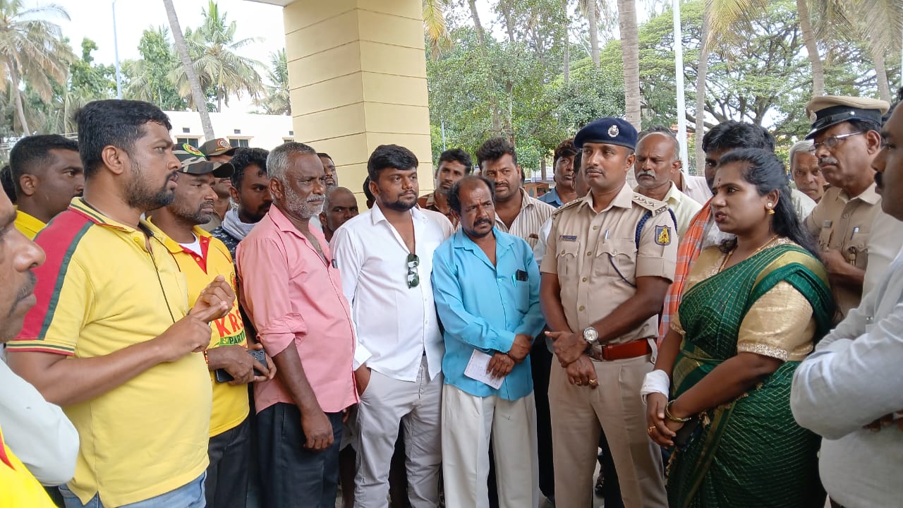ತಹಶಿಲ್ದಾರ್ ಸ್ಥಳಕ್ಕೆ ಆಗಮಿಸಿದಾಗ ಕೆ.ಆರ್.ಎಸ್ ಪಕ್ಷದ ಮುಖಂಡ ರಘು ಜಾಣಗೆರೆ ತರಾಟೆಗೆ ತೆಗೆದುಕೊಂಡ ಪ್ರಸಂಗ ಜರುಗಿತು, ಈ ವೇಳೆ ಇಬ್ಬರ ನಡುವೆ ಮಾತಿನ ಚಕಮಕಿ ನಡೆಯಿತು, ತಹಶೀಲ್ದಾರ್ ಅವರಿಗೆ ಅಸಂವಿಧಾನಾತ್ಮಕ ಪದವನ್ನು ಬಳಸಿ ಮಾತನಾಡದಂತೆ ರಘು ಜಾಣಗೆರೆ ತಾಕೀತು ಮಾಡಿದರು. ಎರಡು ದಿನಗಳ ಹಿಂದೆ ತಾಲೂಕು ಕಚೇರಿಗೆ ಚನ್ನತಿಮ್ಮನಪಾಳ್ಯ ಗ್ರಾಮದ ರೈತರು ಆಗಮಿಸಿ, ತಮಗಾಗಿರುವ ಬೆಳೆ ನಷ್ಟದ ಪರಿಹಾರದ ಬಗ್ಗೆ ಕೇಳುವ ವೇಳೆ ಮಾತಿನ ಚಕಮಕಿ ನಡೆದು ಅವರನ್ನು ಪೊಲೀಸ್ ಠಾಣೆಯಲ್ಲಿ ಕೂರಿಸಿರುವುದು ಅಕ್ಷಮ್ಯ ಅಪರಾಧ. ತಿಳುವಳಿಕೆ ಇಲ್ಲದ ರೈತರೊಂದಿಗೆ ಈ ರೀತಿಯ ದುರ್ವರ್ತನೆ ತೋರಿರುವುದು ಸರಿಯಲ್ಲ ಎಂದು ಕೋಪ ವ್ಯಕ್ತಪಡಿಸಿದರು.