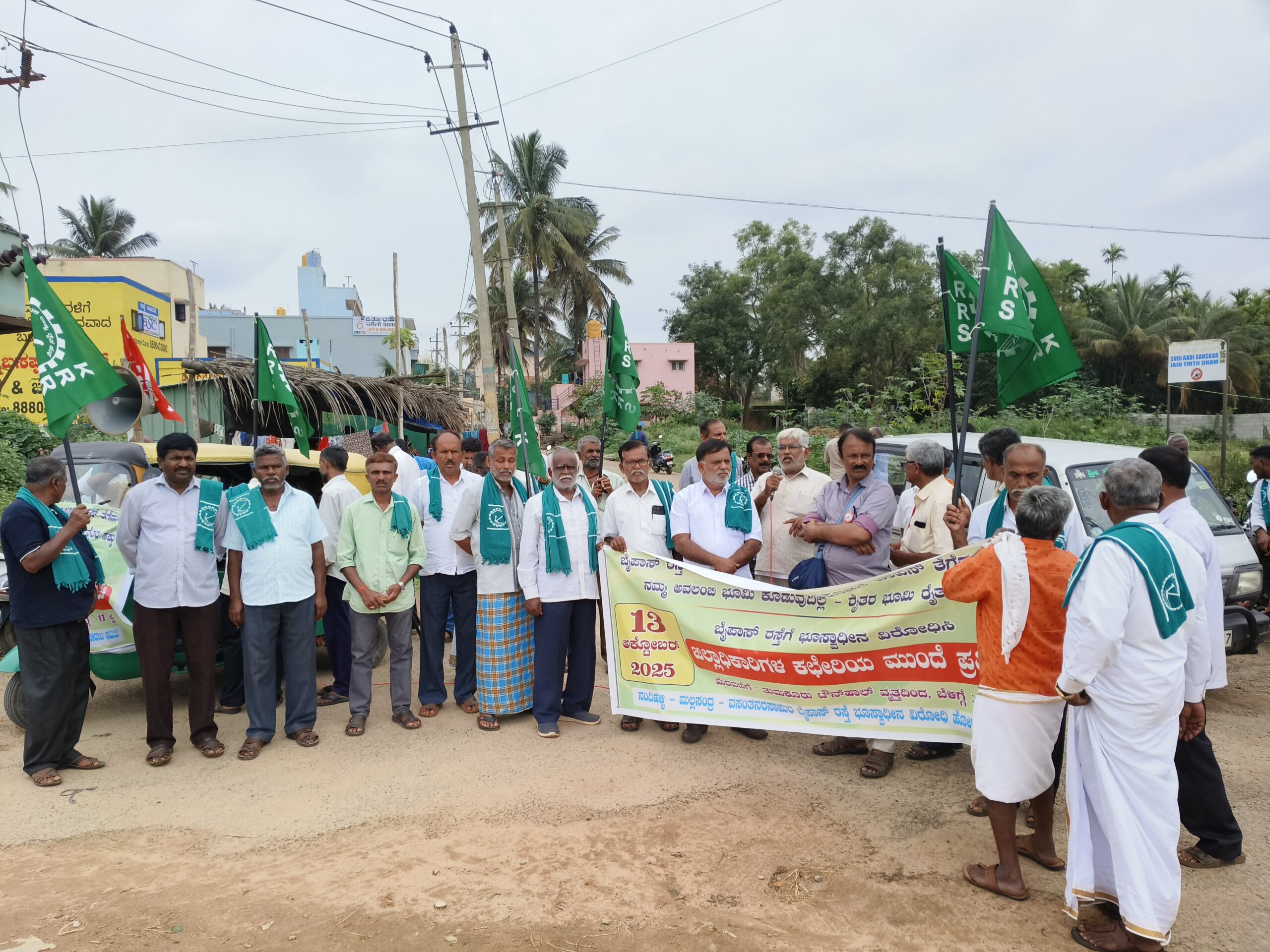 ತುಮಕೂರು ತಾಲೂಕಿನ ನಂದಿಹಳ್ಳಿ, ಮಲ್ಲಸಂದ್ರ, ವಸಂತನರಸಾಪುರ ಪ್ರಸ್ತಾಪಿತ ಔಟರ್ ರಿಂಗ್ ರಸ್ತೆಗೆ ಸರಕಾರ ರೈತರ ಅನುಮತಿ ಇಲ್ಲದೆ ಭೂಸ್ವಾಧೀನ ಮಾಡಿಕೊಳ್ಳಲು ಹೊರಟಿರುವ ಕ್ರಮವನ್ನು ಖಂಡಿಸಿ ರೈತ ಪರ ಸಂಘಟನೆಗಳು ಪ್ರತಿಭಟನೆ ನಡೆಸಿದವು.