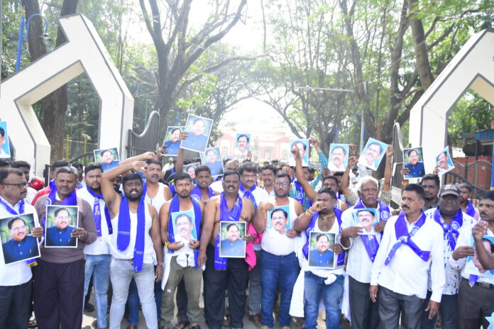 ನೂರಾರು ದಲಿತ ಯುವಜನರ ತುಮಕೂರಿನ ಟೌನ್ಹಾಲ್ ಮುಂಭಾಗ ಇರುವ ಅಂಬೇಡ್ಕರ್ ಪ್ರತಿಮೆಯಿಂದ ಬಿಜಿಎಸ್ ವೃತ್ತದವರೆಗೆ ಅರೆಬೆತ್ತಲೆ ಮೆರವಣಿಗೆ ನಡೆಸಿ, ಕೆಲ ಕಾಲ ಮಾನವ ಸರಪಳಿ ನಿರ್ಮಿಸುವ ಮೂಲಕ ಕಾಂಗ್ರೆಸ್ ಪಕ್ಷದ ಮೇಲೆ ಒತ್ತಡ ಹಾಕುವ ಪ್ರಯತ್ನ ನಡೆಸಿದರು.