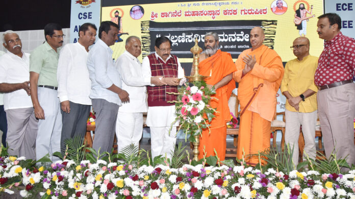ತುಮಕೂರಿನ ಶ್ರೀದೇವಿ ಶಿಕ್ಷಣ ಸಂಸ್ಥೆ ಆವರಣದಲ್ಲಿ ಕಾಗಿನೆಲೆ ಮಹಾಸಂಸ್ಥಾನ ಕನಕ ಗುರುಪೀಠ ಆಯೋಜಿಸಿದ್ದ “ತಲ್ಲಣಸದಿರು ಮನವೇ” ಸಂಸ್ಕೃತಿ ಚಿಂತನ ಚಾರಣ ಕಾರ್ಯಕ್ರಮ ಉದ್ಘಾಟಿಸಿ ಉದ್ಯೋಗ ಸಿರಿ ಯೋಜನೆಗೆ ಚಾಲನೆ ನೀಡಿ ಮಾತನಾಡಿದರು.