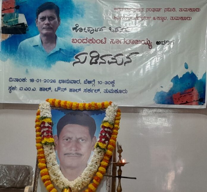 ಕರ್ನಾಟಕ ದಲಿತ ಸಂಘರ್ಷ ಸಮಿತಿ ತುಮಕೂರು ಮತ್ತು ಜನಪರ ಸಂಘಟನೆಗಳ ಒಕ್ಕೂಟದ ವತಿಯಿಂದ ಇತ್ತೀಚೆಗೆ ನಿಧನರಾದ ಹೋರಾಟದ ಒಡನಾಡಿ, ದಲಿತ ಮುಖಂಡ ಬಂದಕುಂಟೆ ನಾಗರಾಜಯ್ಯ ಅವರಿಗೆ ನುಡಿನಮನ ಕಾರ್ಯಕ್ರಮ ತುಮಕೂರಿನ ಟೌನ್ ಹಾಲ್ ಸರ್ಕಲ್ ನಲ್ಲಿರುವ ಐಎಂಎ ಹಾಲ್ ನಲ್ಲಿ ನಡೆಯಿತು.