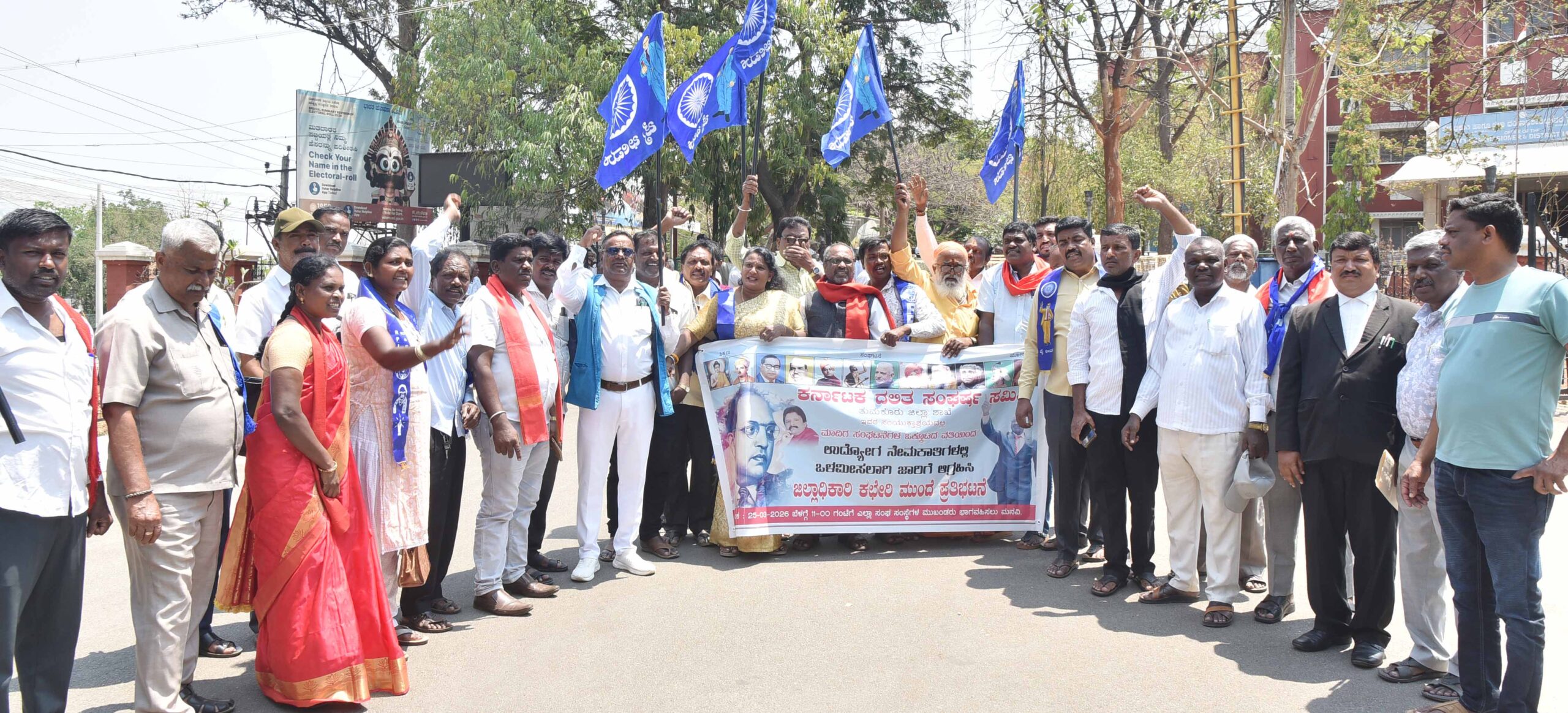 ಒಳಮೀಸಲಾತಿ ಇಲ್ಲದೆ ರಾಜ್ಯದಲ್ಲಿ 56432 ಹುದ್ದೆಗಳ ತುಂಬಲು ಹೊರಡಿಸಿರುವ ಅಧಿಸೂಚನೆಯನ್ನು ಕೂಡಲೇ ಹಿಂಪಡೆಯಬೇಕು, ವಿಶ್ವವಿದ್ಯಾಲಯಗಳನ್ನು ಒಂದು ಘಟಕವಾಗಿ ಪರಿಗಣಿಸಿ ನೇಮಕಾತಿ ಕೈಬಿಡಬೇಕು ಹಾಗೂ ಇನ್ನಿತರ ಬೇಡಿಕೆಗಳ ಈಡೇರಿಕೆಗೆ ಒತ್ತಾಯಿಸಿ ಬುಧವಾರ ಕರ್ನಾಟಕ ದಲಿತ ಸಂಘರ್ಷ ಸಮಿತಿ ಹಾಗೂ ಆರ್.ಪಿ.ಐ ಕರ್ನಾಟಕ ವತಿಯಿಂದ ಜಿಲ್ಲಾಧಿಕಾರಿಗಳ ಕಚೇರಿ ಎದುರು ಪ್ರತಿಭಟನೆ ನಡೆಸಿ, ಮನವಿ ಸಲ್ಲಿಸಲಾಯಿತು.