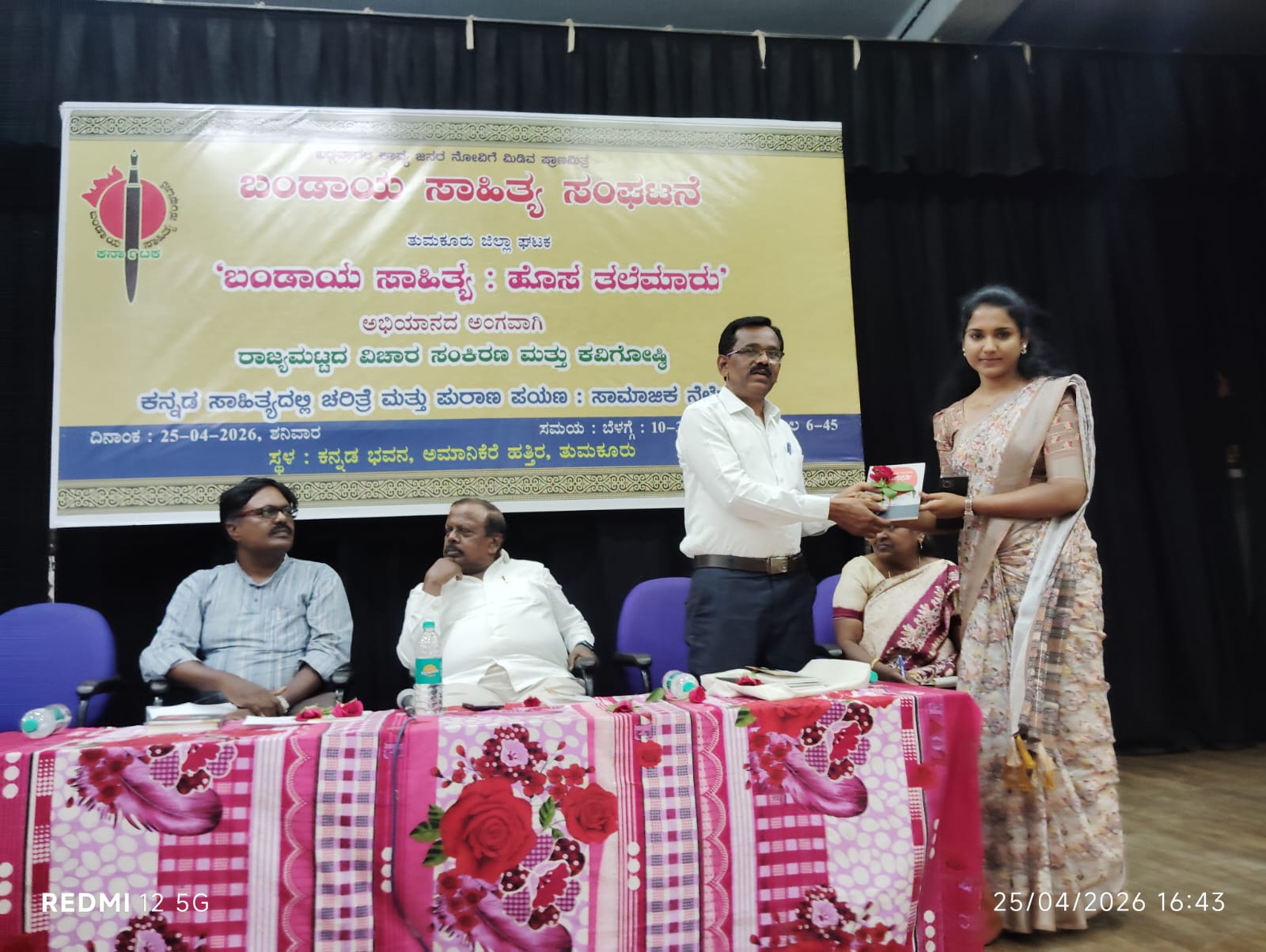 ಬಂಡಾಯ ಸಾಹಿತ್ಯ ಸಂಘಟನೆ ತುಮಕೂರು ಜಿಲ್ಲಾ ಘಟಕದ ವತಿಯಿಂದ ತುಮಕೂರಿನ ಕನ್ನಡ ಭವನದಲ್ಲಿ ‘ಬಂಡಾಯ ಸಾಹಿತ್ಯ: ಹೊಸ ತಲೆಮಾರು ಅಭಿಯಾನದ ಅಂಗವಾಗಿ ನಡೆದ ಕವಿಗೋಷ್ಠಿಯಲ್ಲಿ ಆಶಯ ನುಡಿಗಳನ್ನಾಡಿ ಮಾತನಾಡಿದರು.