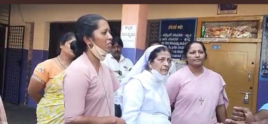 ಇದು ಸರ್ವಧರ್ಮೀಯ ವಿದ್ಯಾರ್ಥಿಗಳು ವ್ಯಾಸಂಗ ಮಾಡುತ್ತಿರುವ ಶಾಲೆಯಾದರೆ ನೀವು ಕ್ರಿಸ್ತನ ಭಾವಚಿತ್ರವನ್ನು ಮಾತ್ರ ಹಾಕಿದ್ದೀರಿ. ನಾವು ಸರಸ್ವತಿ, ಈಶ್ವರನ ಫೋಟೋ ತಂದುಕೊಡುತ್ತೇವೆ. ಅವುಗಳನ್ನು ಹಾಕಿ. ನಿಮಗೆ ಸಂಬಳ ಕೊಡುವುದು ಯಾರು? ಸರ್ಕಾರ ಹಣ ಕೊಡುವುದಾದರೆ ನಾವು ಹೇಳಿದಂತೆ ನೀವು ಕೇಳಬೇಕು ಎಂದು ಸಂಘ ಪರಿವಾರದ ಕಾರ್ಯಕರ್ತರು ಶಿಕ್ಷಕಿಯರು ಮತ್ತು ಸಿಸ್ಟರ್ಸ್ ಗಳಿಗೆ ಕೇಳುತ್ತಿರುವ ಧ್ವನಿಯುಕ್ತ ದೃಶ್ಯಗಳು ವಿಡಿಯೋದಲ್ಲಿ ಸೆರೆಯಾಗಿವೆ.