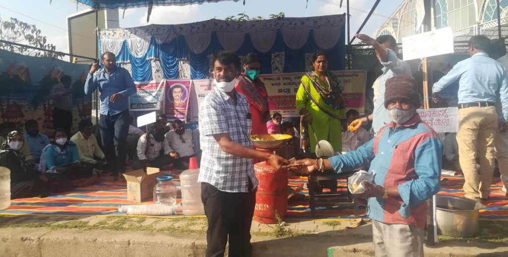 ಕಳೆದ ನಾಲ್ಕು ದಿನಗಳಿಂದ ಬ್ಯಾಚ್ ವೈಸ್ ಧರಣಿ ಕುಳಿತು ಪ್ರತಿಭಟನೆ ಕೈಗೊಂಡಿರುವ ಅತಿಥಿ ಉಪನ್ಯಾಸಕರು ಸರ್ಕಾರದ ಕಣ್ಣು ತೆರೆಸುವ ಉದ್ದೇಶದಿಂದ ವಿಶಿಷ್ಠ ರೀತಿಯ ಪ್ರತಿಭಟನೆ ಮಾಡುತ್ತಿದ್ದಾರೆ. ಡಿಸೆಂಬರ್ 30ರಂದು ಧರಣಿ ಸ್ಥಳದಲ್ಲೇ ಅತಿಥಿ ಉಪನ್ಯಾಸಕರು ಗ್ಯಾಸ್ ಇಟ್ಟುಕೊಂಡು ಬೋಂಡಾ ತಯಾರಿಸಿ ಸಾರ್ವಜನಿಕರಿಗೆ ಮಾರಾಟ ಮಾಡಿ ಸಾರ್ವಜನಿಕರು ಮತ್ತು ಆಡಳಿತ ಯಂತ್ರದ ಗಮನ ಸೆಳೆಯುವ ಯತ್ನ ಮಾಡಿದರು.
