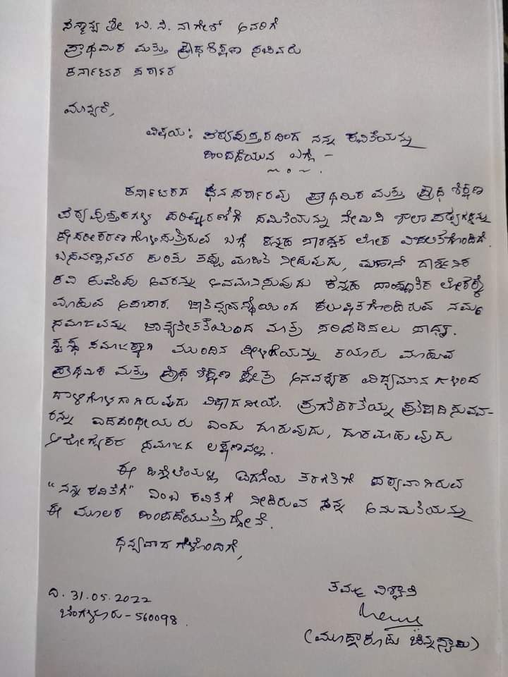 ಈ ಹಿನ್ನೆಲೆಯಲ್ಲಿ ಐದನೆಯ ತರಗತಿಗೆ ಪಠ್ಯವಾಗಿರುವ ನನ್ನ ಕವಿತೆಗೆ ಎಂಬ ಕವಿತೆಗೆ ನೀಡಿರುವ ನನ್ನ ಅನುಮತಿಯನ್ನು ಹಿಂಪಡೆಯುತ್ತಿದ್ದೇನೆ ಎಂದು ತಿಳಿಸಿದ್ದಾರೆ.